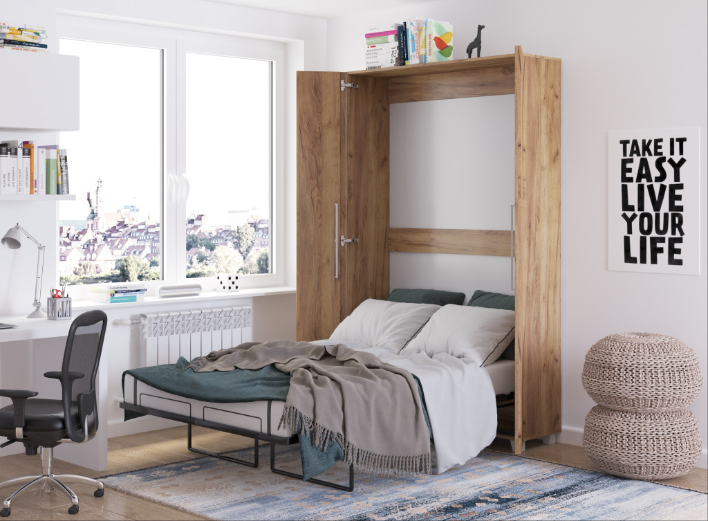 Keskeny szekrényből lehajtható 120x200 cm-es egyszemélyes szekrényágy keret ágyráccsal, matrac nélkül