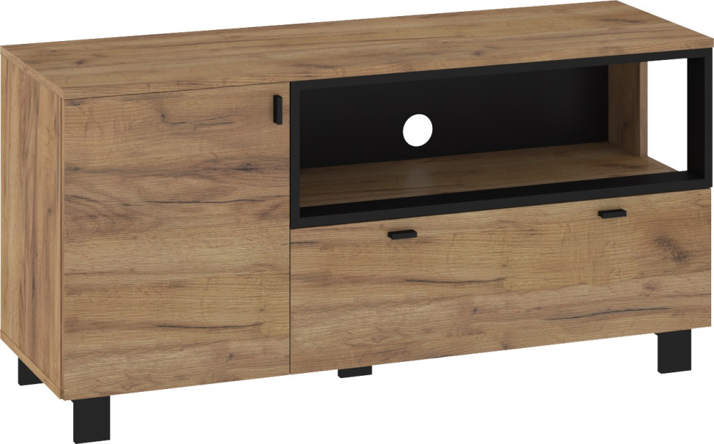 Vegas TV-állvány 1 ajtó 1 fiók - Arany tölgy - Fekete