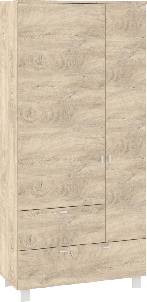 Vegas gardróbszekrény 2 ajtó 2 fiók - Endgrain tölgy - Fehér