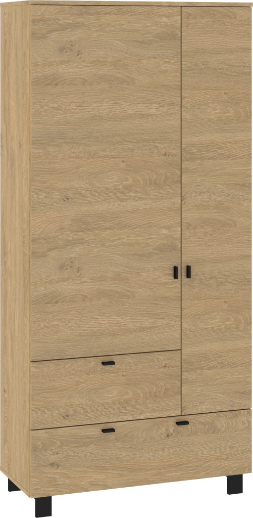 Vegas gardróbszekrény 2 ajtó 2 fiók - Stone tölgy - Fekete