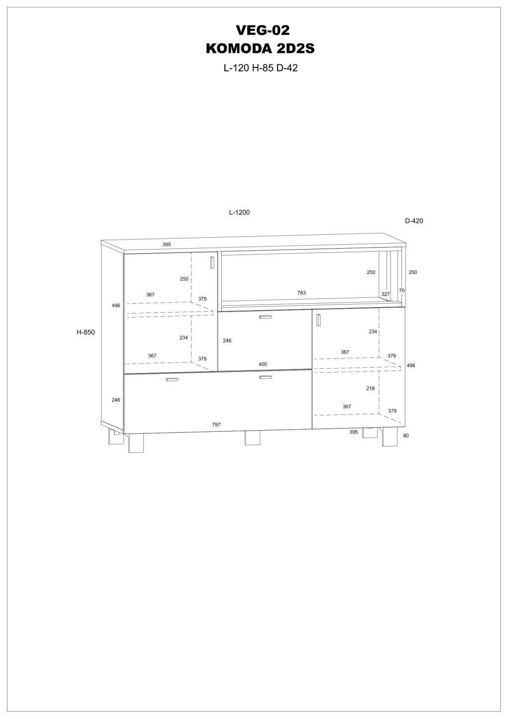 Komód 2 ajtóval 1 nagy és 1 kisebb fiókkal az ajtó mögött polccal és nyitott polccal