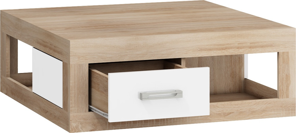 Verin dohányzóasztal - Világos Sonoma tölgy - Fényes fehér