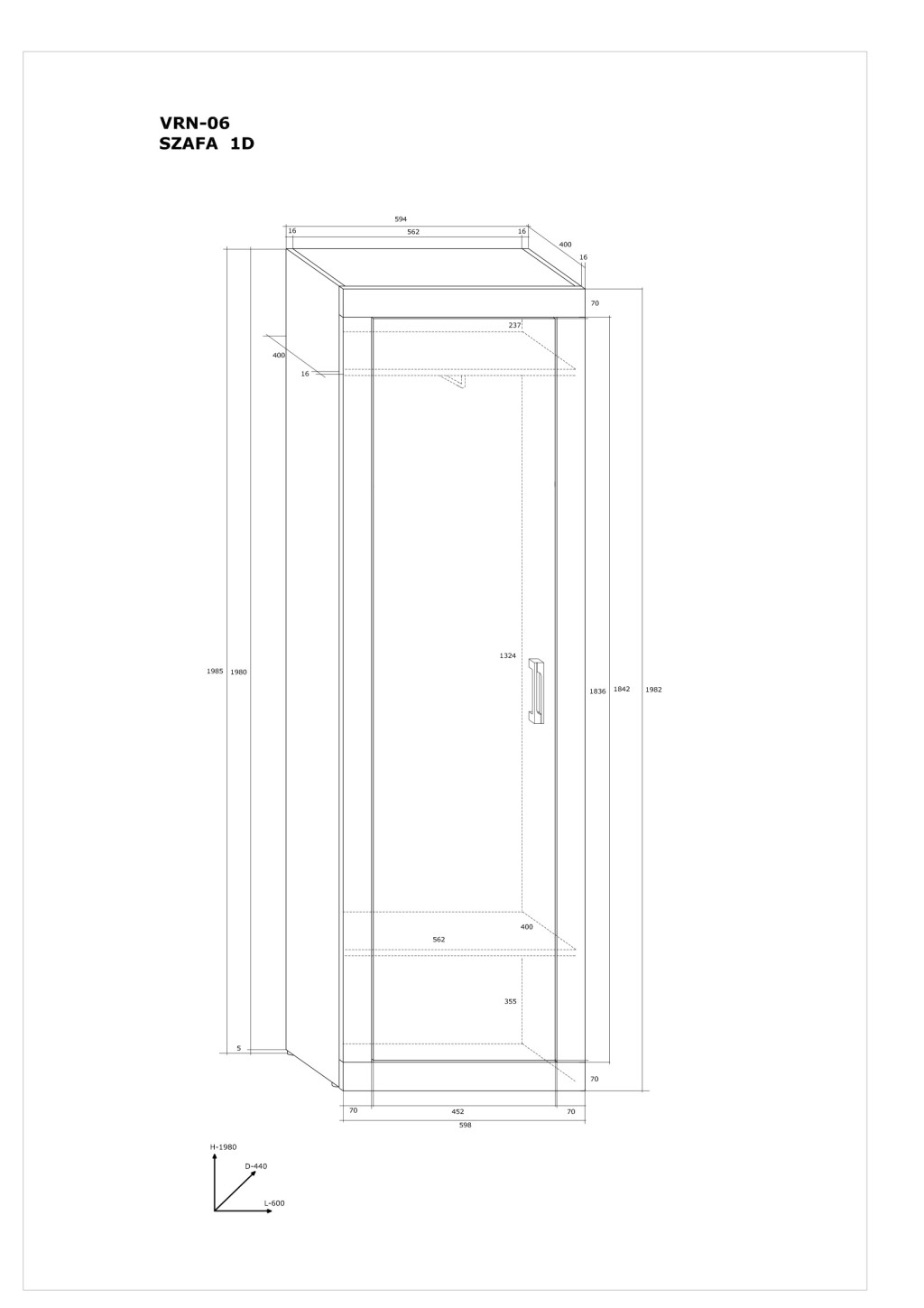 Gardróbszekrény 1 ajtóval az ajtó mögött alul-felül 1-1 polccal és vállfatartóval