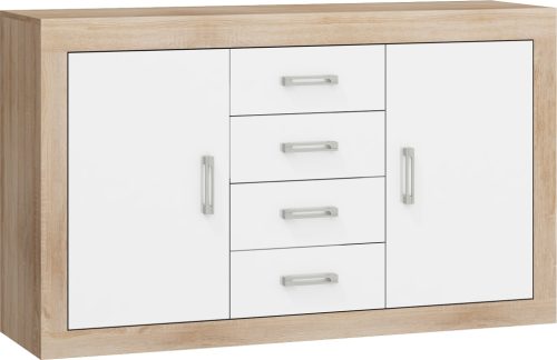 Verin komód 2 ajtó 4 fiók - Világos Sonoma tölgy - Fényes fehér