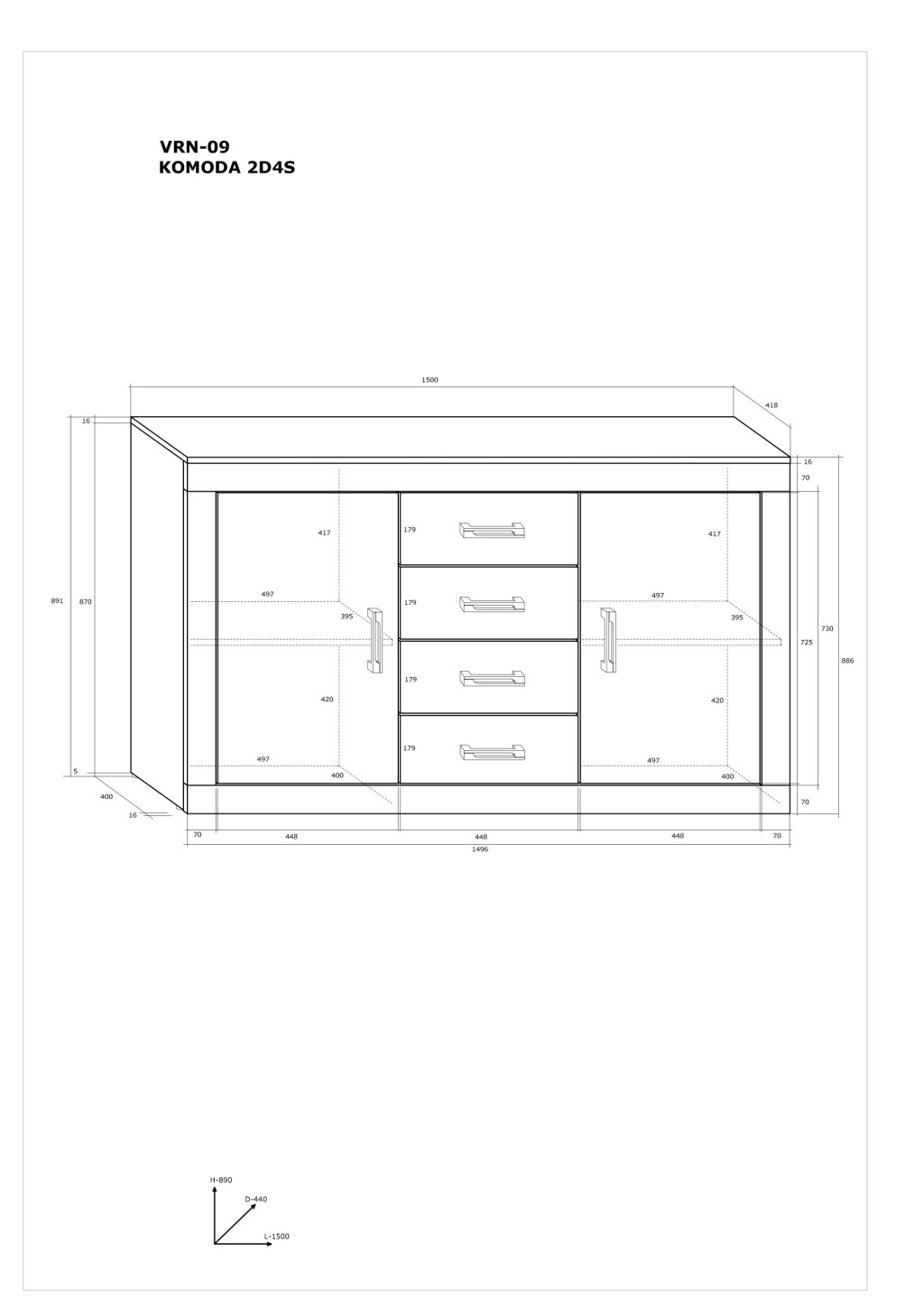 Komód 2 ajtóval 4 fiókkal az ajtók mögött polcokkal