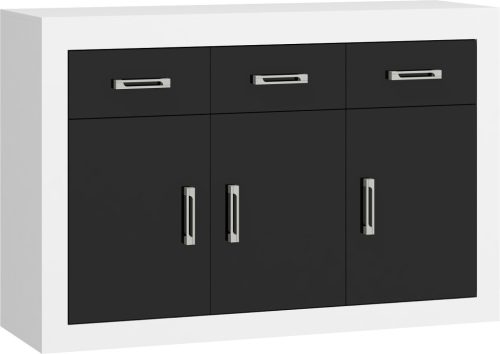 Verin komód 3 ajtó 3 fiók - Fehér - Fényes fekete