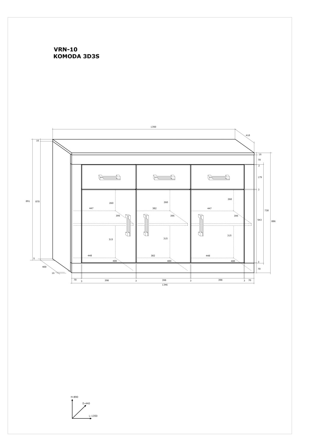 Komód 3 ajtóval 3 fiókkal az ajtók mögött polcokkal