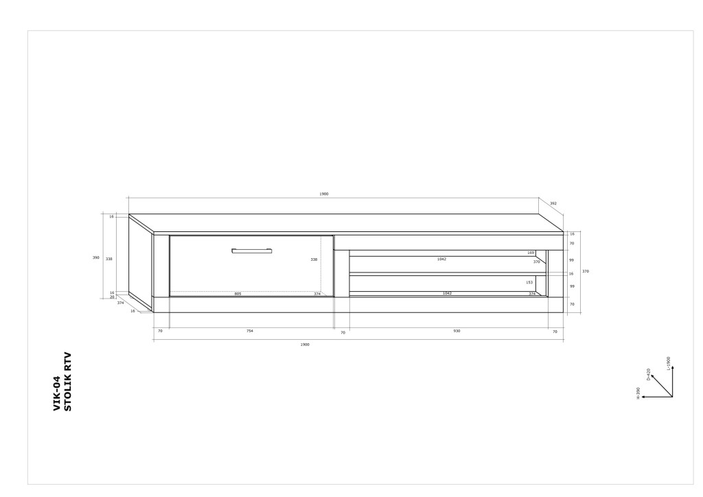 TV-állvány 1 lenyíló ajtóval és nyitott polcokkal